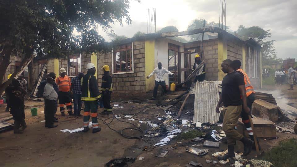 Kasese, Uganda – School properties worth millions were destroyed in a fire outbreak at Fr. Kayonza Secondary School in Kinyamwengye Village, Karungibati Ward, Hima Town Council, Kasese District.